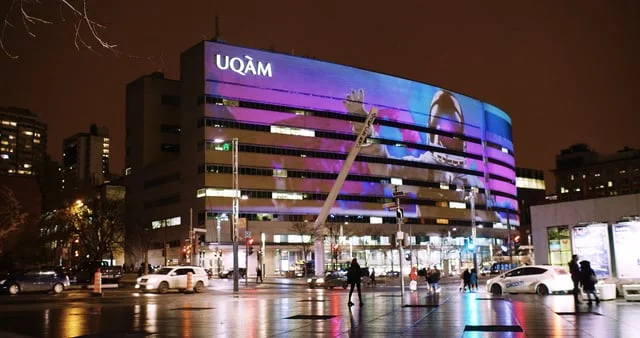 The multidisciplinary creative studio makes optimal use of projection technology and a unique mix of photo-montage, video, 3D renderings and vector animation with a particular focus on developing dynamic and grandiose images in bright, shimmering colours to create surrealistic and vivid scenery. Not only will the building’s façade serve as a backdrop to the videoprojection, it will also transform into a space shuttle, inside and out, whose structure is demarcated by the architectural lines of the Pavillion Président-Kennedy UQAM.